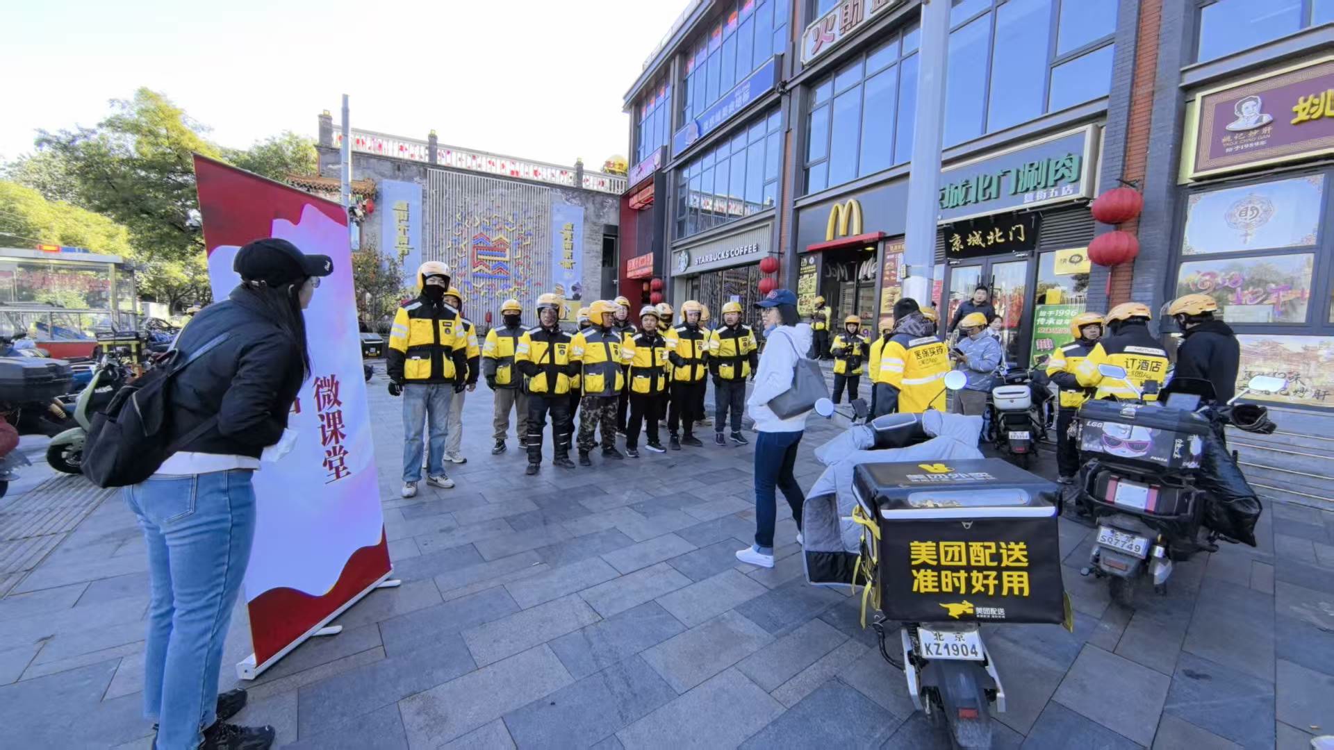 近日,北京市东城区人社局联合北新桥街道,在簋街试点推出全市首创的“骑心守护微课堂”,将新就业群体权益保障政策宣讲嵌入骑手“早会一刻钟”工作场景,以“短平快、接地气”的创新形式,为城市配送主力军送上权益保障定心丸。