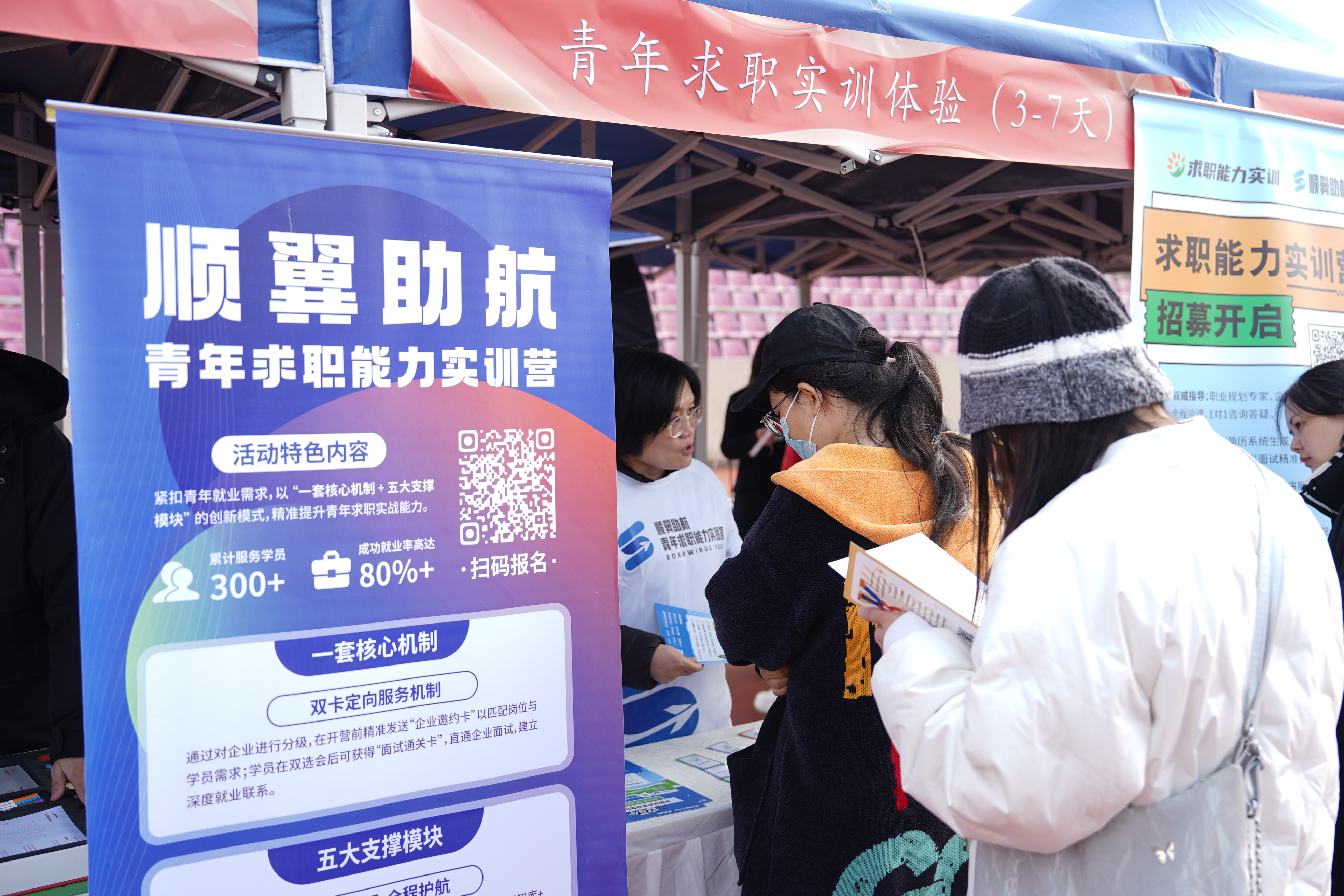 除此以外,以“重点群体就业需求+区域产业发展方向”为核心,在招聘洽谈区分类设置了高校毕业生专区、重点行业专区等特色招聘板块,并对参会企业及岗位标注 “实训营合作企业”“暖心服务岗位”等特色标识,实现岗位资源的集中化、标签化呈现,助力求职者快速识别适配岗位,降低求职决策成本,提升岗位对接效率。