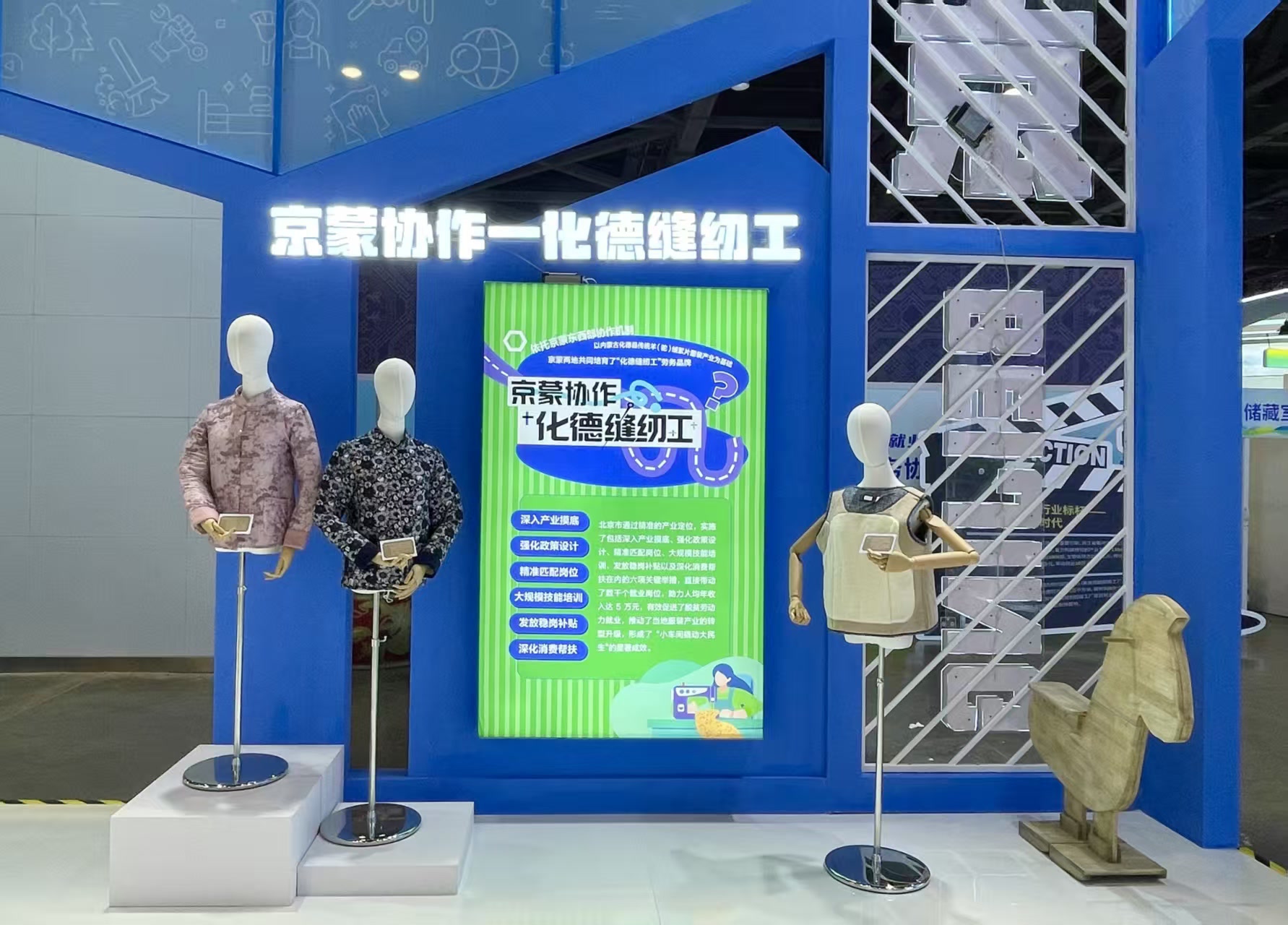 “京蒙协作——化德缝纫工”依托京蒙东西部协作机制由京蒙两地共同培育。在内蒙古化德县传统羊(驼)绒絮片服装产业基础上,我市实施了深入产业摸底、精准匹配岗位、开展技能培训、深化消费帮扶等多项举措,直接带动了数千个就业岗位,助力人均年收入达5万元,推动了当地服装产业转型升级,形成“小车间撬动大民生”的显著成效。