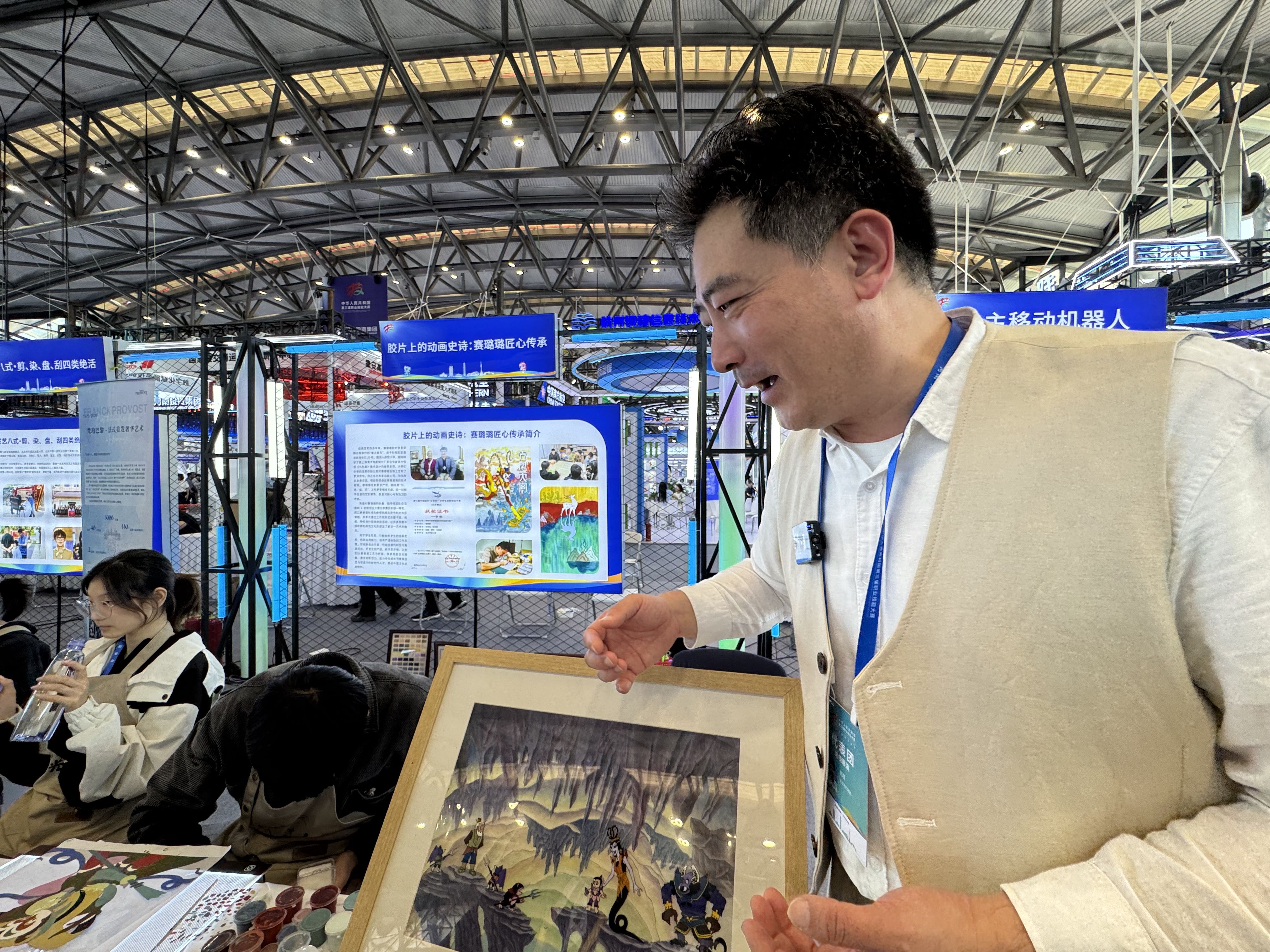 值得一提的是,本届大赛从全国征集226个绝技绝活项目,最终精选40项进行现场展演,涵盖高新技术、手工制作、艺术创意等领域。来自北京的赵磊赛璐璐动画片创作团队,是本届大赛精选出的绝技绝活展示项目。在河南郑州的大赛现场,赵磊正带领学生,复原动画片《大闹天宫》原稿,这正是失传20年的赛璐璐动画片制作工艺。