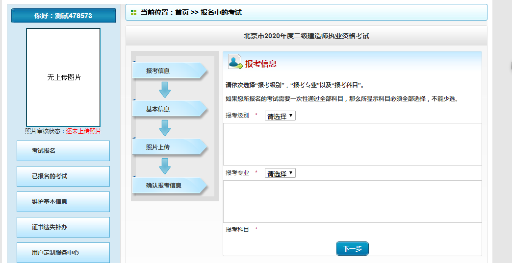 答:考生可进入北京市人力资源和社会保障局网站,进入“人事考试服务频道”,点击“考试报名”栏目,选择所要报名的考试进行报名。具体报名流程为: