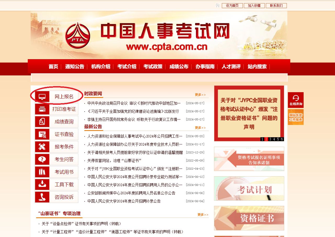 ①进入“网上报名”